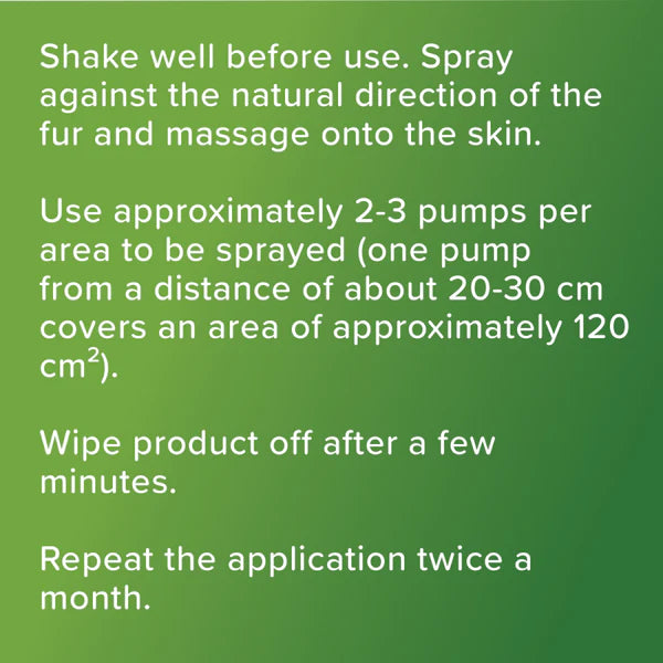 The Vetopure Bio Foam for dogs and cats from Beaphar is effective against fleas, ticks and mosquitoes. The Bio Foam is specifically designed to repel external parasites. The liquid contains Margosa extracts from the Neem tree, a tree known for its repellent properties against insects.