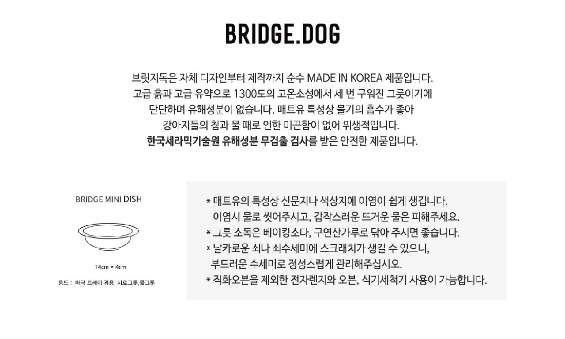 BRIDGE.DOG aims at high-end pet lovers, who are looking for premium quality and absolutely stunning pet food bowls. The entire range is imported from Korea and handmade.