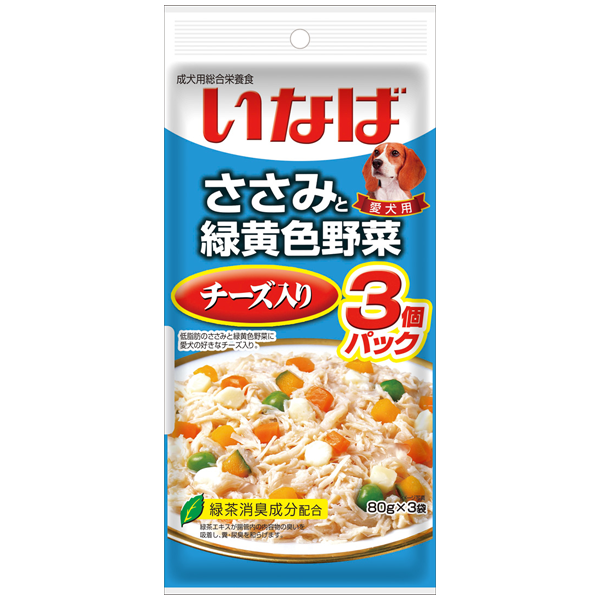 CIAO Chicken Fillet, Cheese and Vegetables Wet Dog Treats 3x60g is carefully made with selected farm-raised chicken and rigorously controlled freshness ensure that your dog will love the taste of these tender fillets, topped with cheese and vegetables for extra nutrition. Convenient one-time use makes feeding your dog easy. No grains, artificial colours and preservatives mean that you can feel good about what you're feeding your pet. Low fat means that this food is healthy as well as tasty!