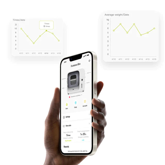 Smarter Pet Care with Furbulous App. Control, manage, and customize Furbulous Box via the Furbulous App. Track behavioral habits and monitor your cat's weight right after every use of your phone. Visualized weekly and monthly insights allow you to identify irregular bowels and weight changes.