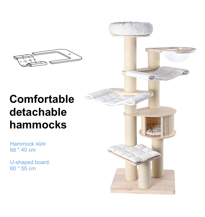 For added stability, each column is cleverly designed to rise staggered, allowing multiple cats to play simultaneously with reliable stability. The product comes flat-packed for easy transportation and requires simple self-assembly. Accessories, including a U-shaped bed and space bowl, are included, and a detailed manual ensures a hassle-free setup process.