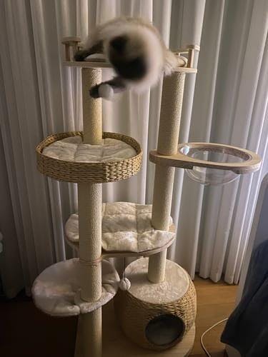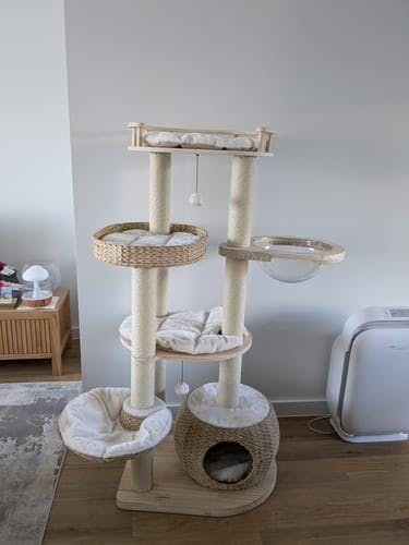 - A beautiful cat climbing tower that doubles as stylish home décor