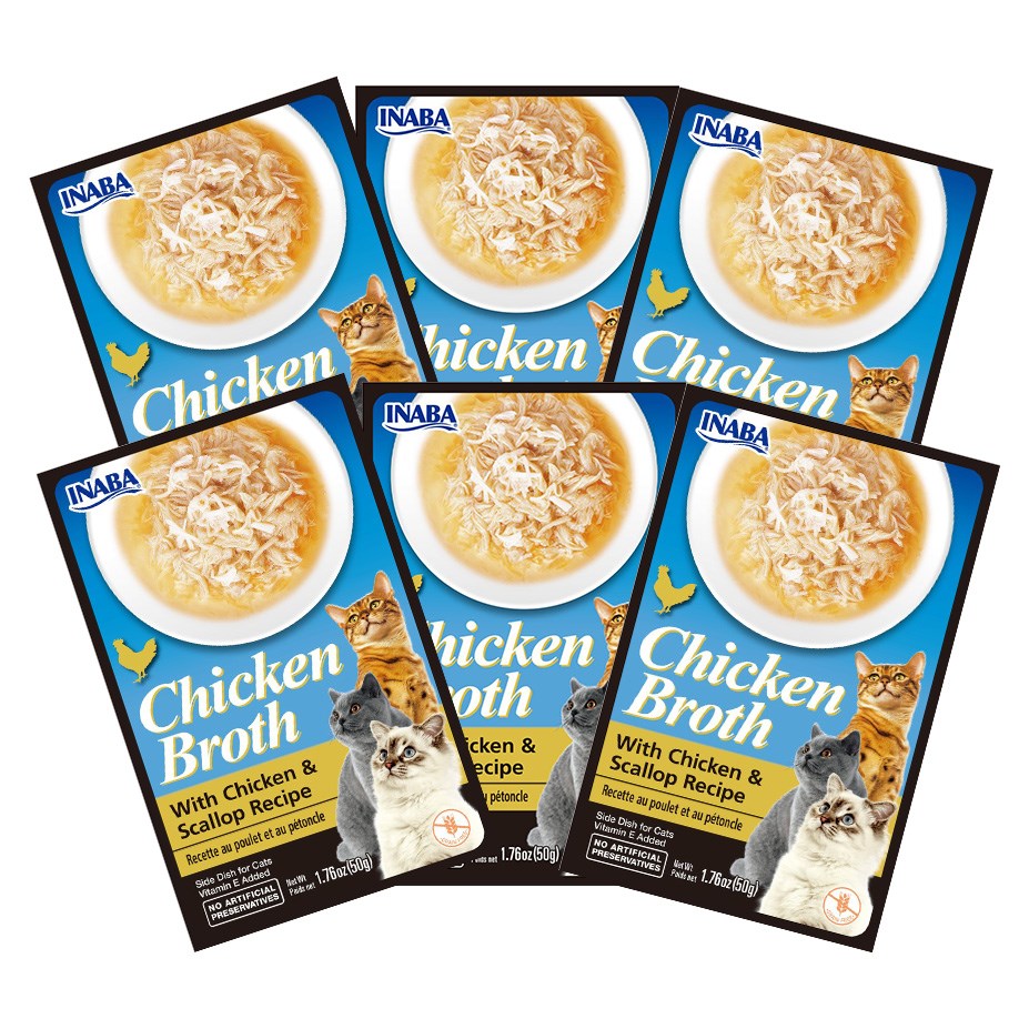 Chicken Broth, Chicken, Scallop, Natural Flavors, Xanthan Gum, Vitamin E Supplement, GreenTea Extract.