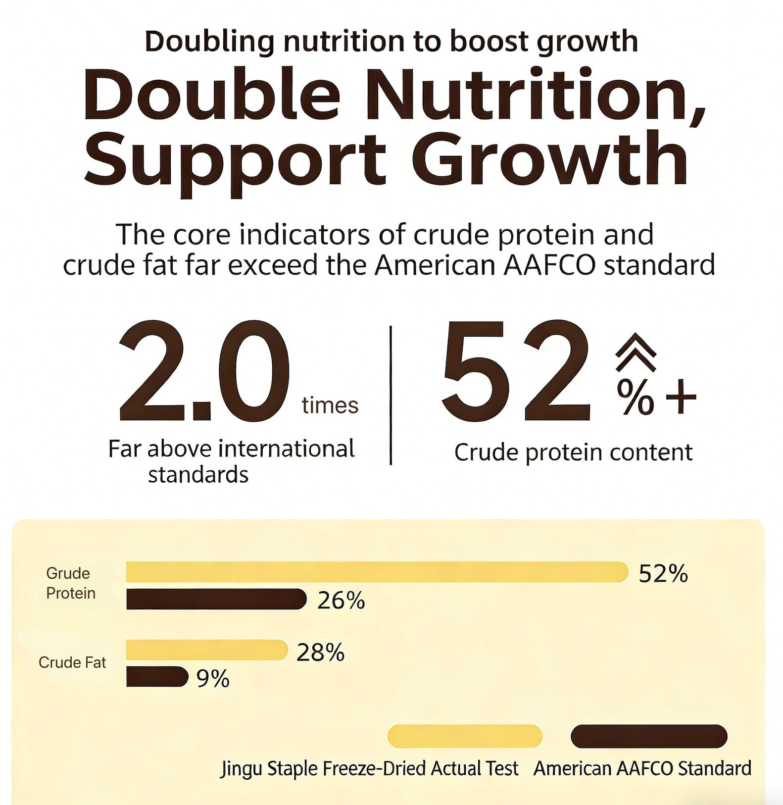 Nourish your feline companion with JinGu Little Yellow Bag, a complete and balanced freeze-dried diet crafted for both kittens and adult cats. We believe in pure, simple nutrition, which is why our formula contains zero added starch or meat meals.