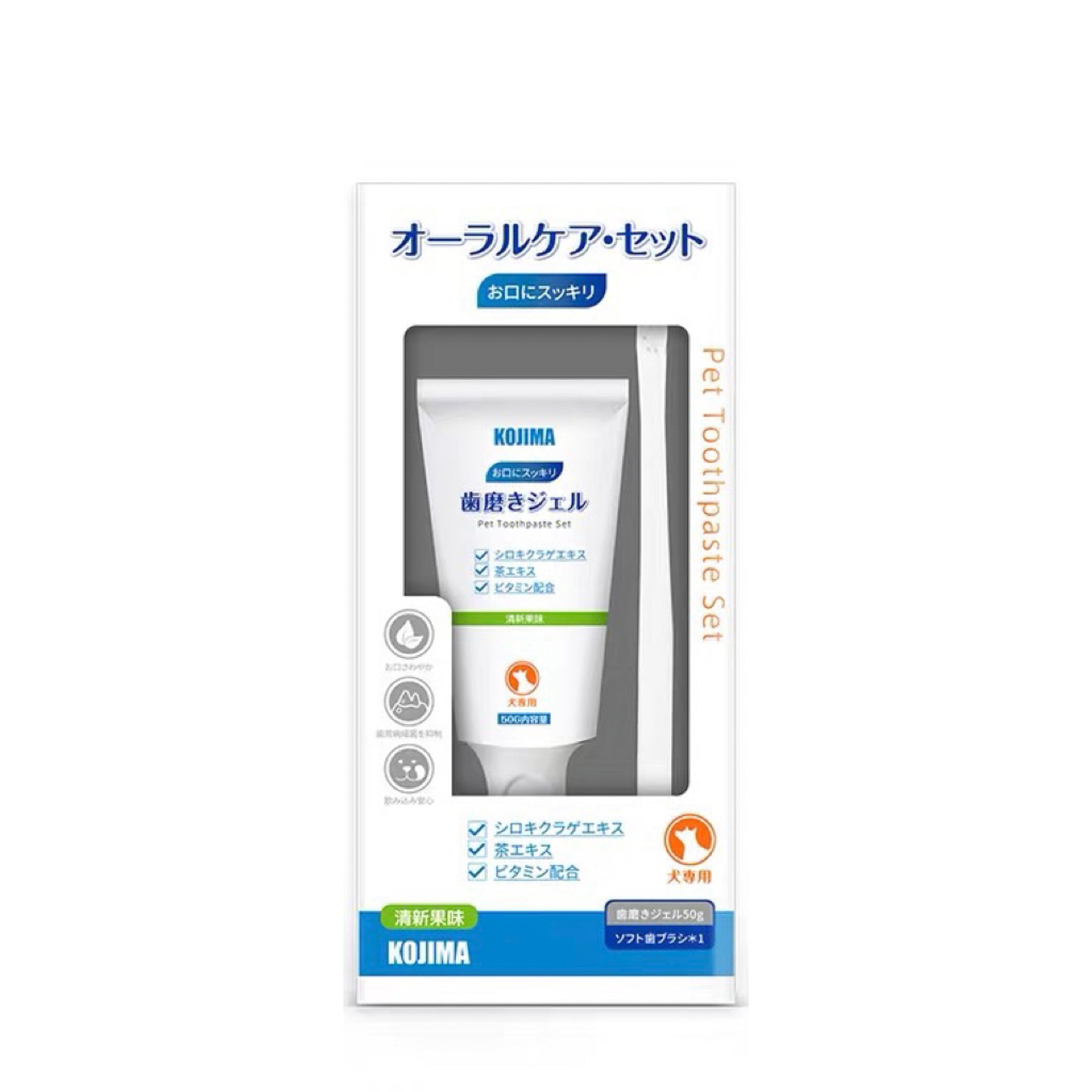 Trust in the KOJIMA Dog Oral Care Kit for your furry friend's oral hygiene needs. This comprehensive set features a specialized dog whitening toothpaste that not only cleans effectively but is also safe for your dog to swallow. Say goodbye to stubborn food particles and plaque buildup with this powerful yet pet-friendly toothpaste.