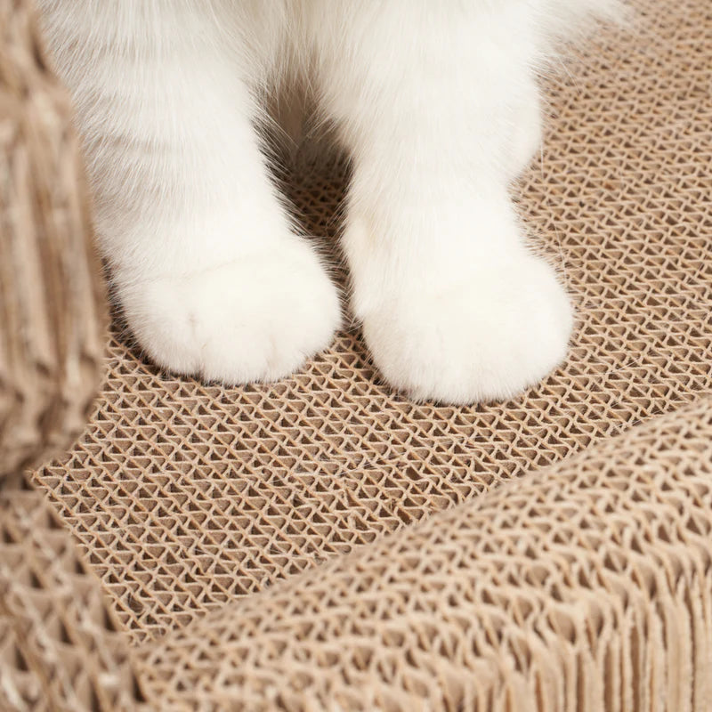 This box provides your feline friend with an ideal playtime, rest, and scratching spot. Made of corrugated cardboard, it is easy to assemble with all parts replaceable. Its cute size is perfect for big cats, offering ample play, rest, and scratching space. Inspired by the beauty of summer plants, it adds a touch of beauty to your home while providing endless fun and relaxation for your cat.