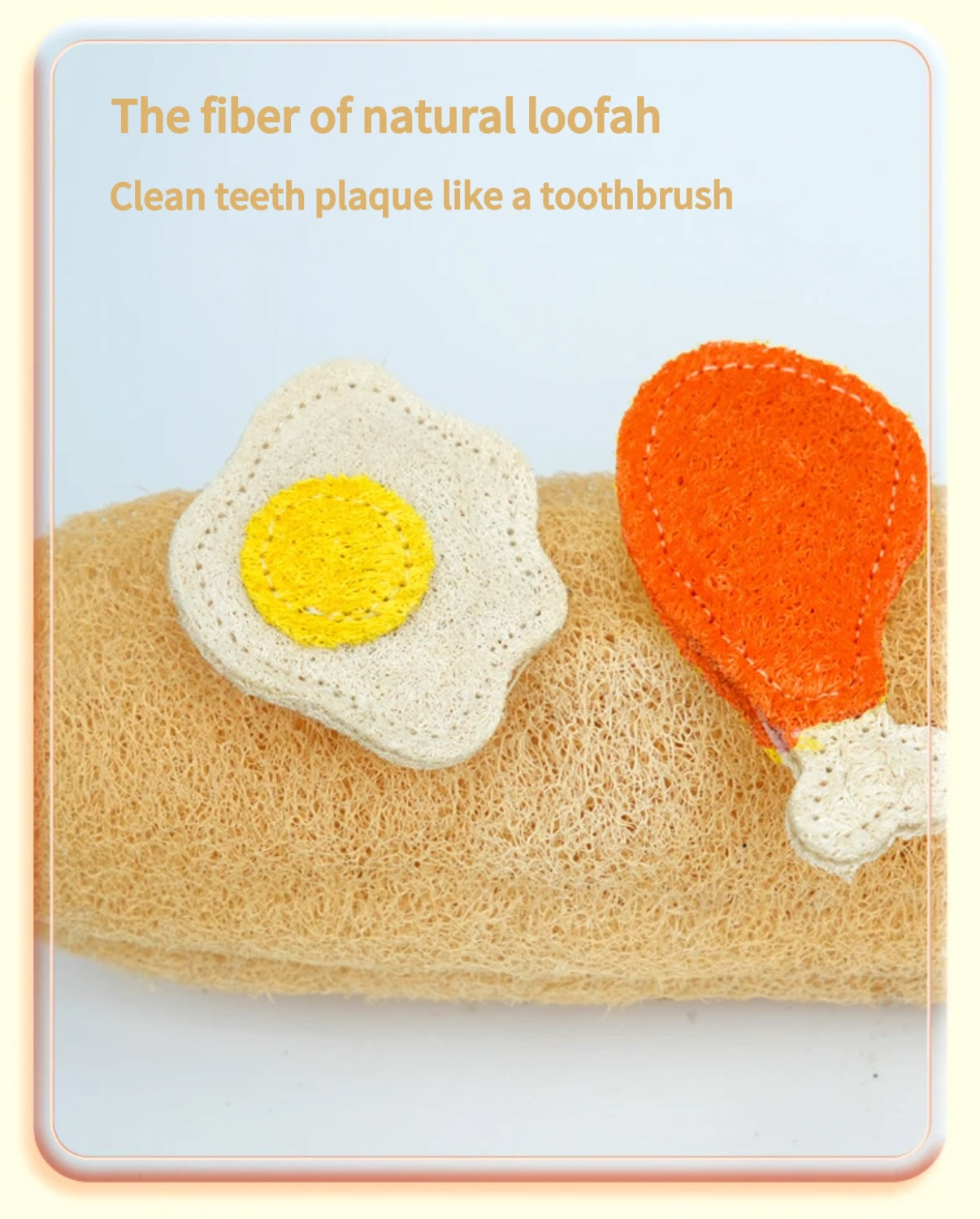 The fibrous texture of loofah gently scrubs away plaque as your cat chews, promoting cleaner teeth and fresher breath—no brushing required!