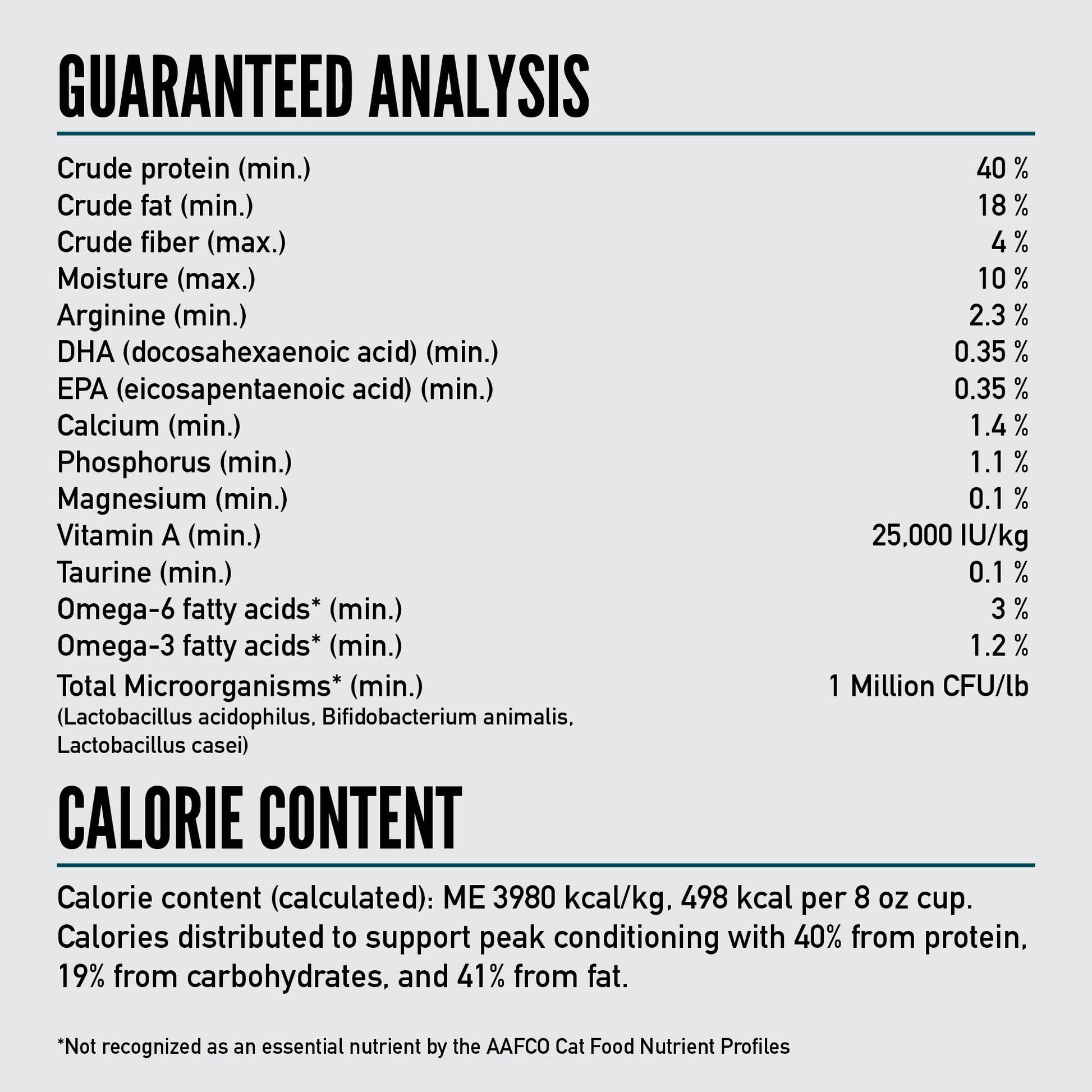 - *Not recognized as an essential nutrient by the AAFCO Cat Food Nutrient Profiles.
