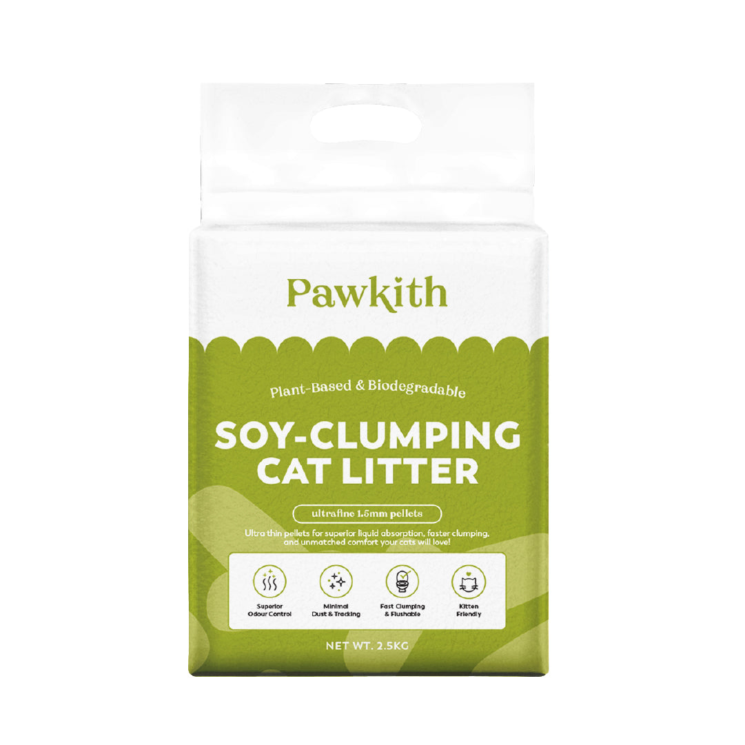 The ideal choice for eco-conscious cat owners. Made from natural soy, this biodegradable and flushable cat litter offers effective odor control, minimal dust, and reduced tracking, ensuring a cleaner environment for you and your feline friend. Its fast-clumping formula makes clean-up a breeze, while its gentle, kitten-friendly composition ensures safety for even the smallest paws. Available in a convenient 2.5kg package, Pawkith Soy-Clumping Cat Litter is the sustainable choice for a fresher home and a happy cat.