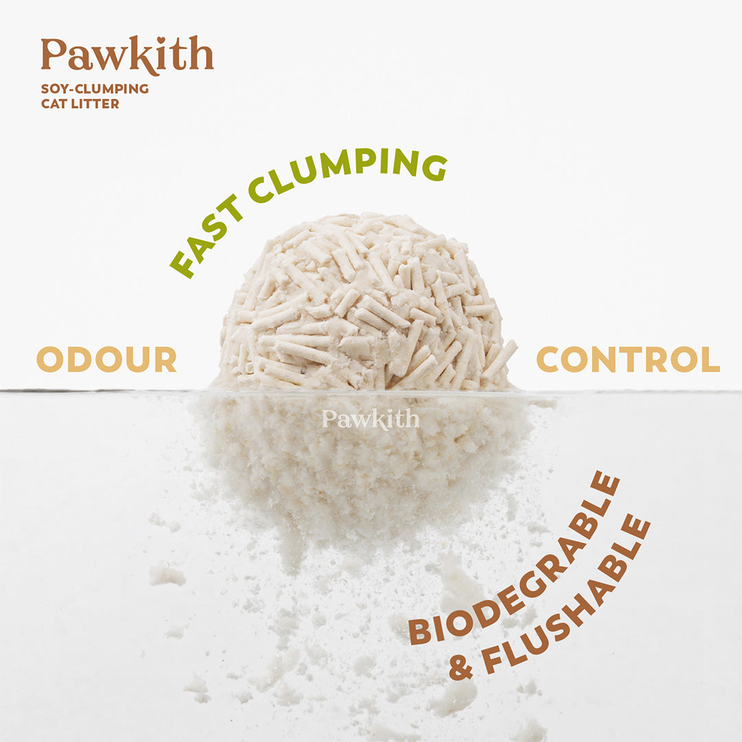 Pawkith's Soy Clumping Cat Litter is a natural, plant-based cat litter, thoughtfully crafted for all cat parents.