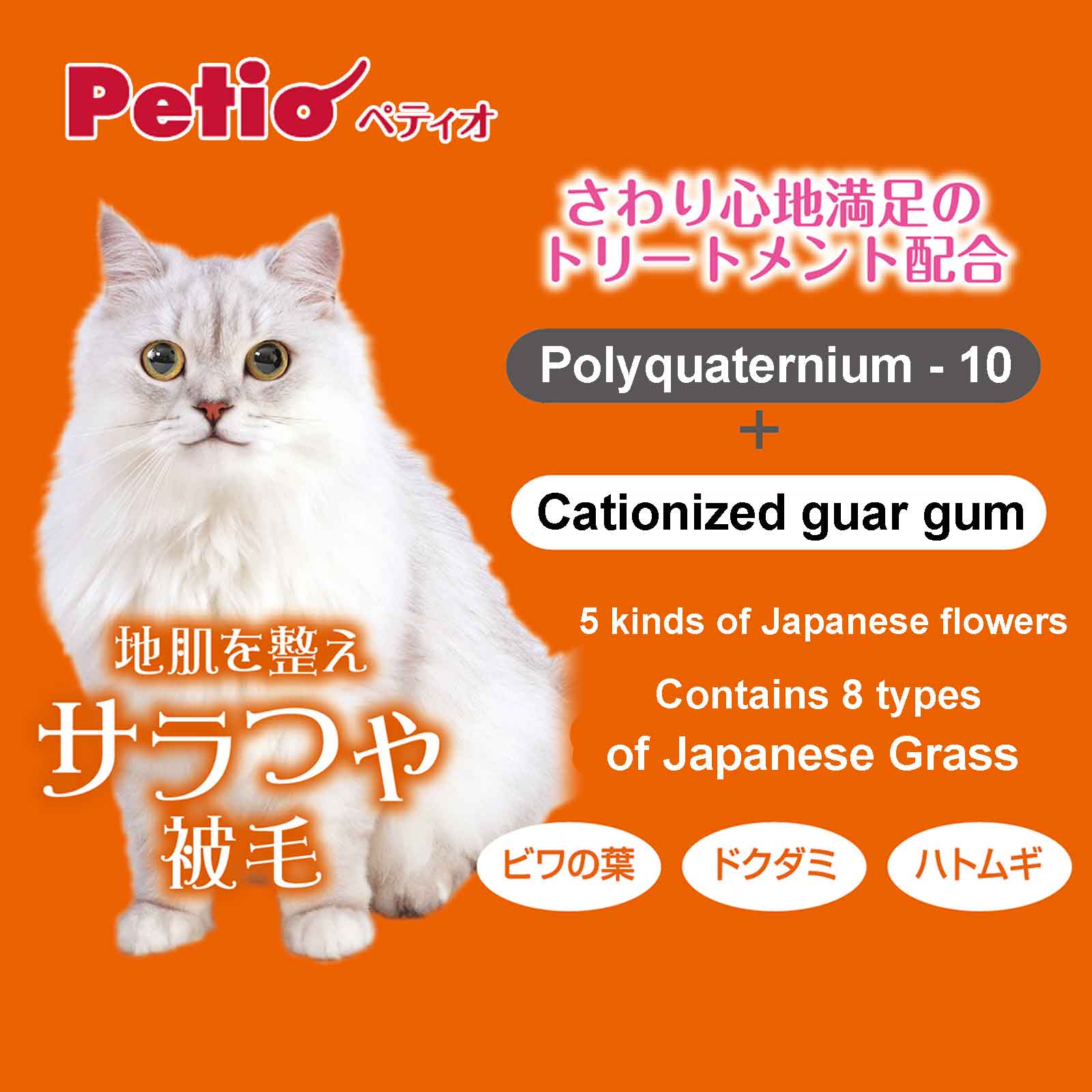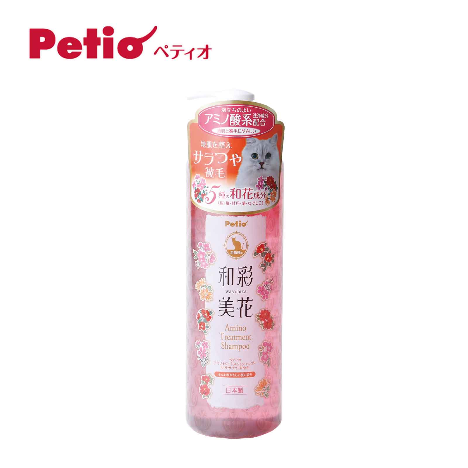 Petio Amino Cherry Blossom Scent Cat Treatment Shampoo that gently cleanses the skin and coat of a cat. Wash gentle and cleanly by blending the weak amino acid detergent ingredients with 5 kinds of Japanese flowers (cherry, camellia, peony, chrysanthemum, Nadeshiko) and 8 kinds of Japanese grasses, and it is smooth and comfortable, smooth and beautiful finish. It is a fragrant cherry aroma, wrapped softly and gently.