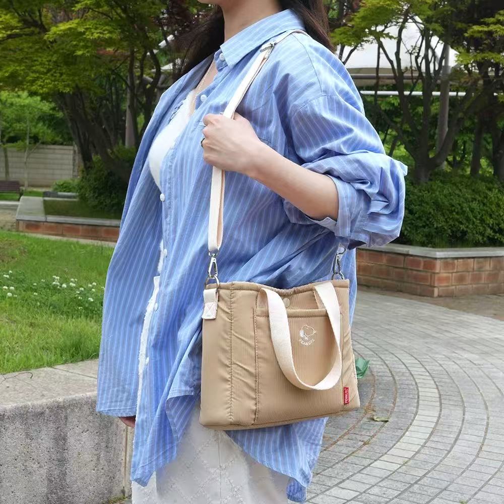 Lightweight Snoopy Peanuts pet carrier tote designed for dogs and cats. Stroller-friendly with secure hooks, organizer pockets and a comfortable shoulder strap — perfect for daily walks and travel.